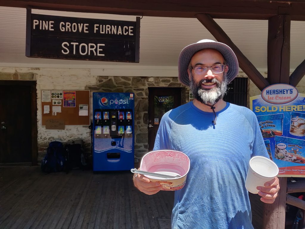 The ice cream challenge is a custom at the halfway point: eat a full half gallon of ice cream in one sitting. While it sounds disgusting, it is. But it’s a once in a lifetime thing to do, and since I’m burning 5000 calories a day I can afford it. Since Hershey made their half gallons less than a half gallon, we have to eat an extra pint just to make sure we get the full experience. I picked raspberries and cream for my tub, and apple pie for the pint. The apple pie ice cream was great actually. I’m not sure I’ll be able to eat raspberries and cream again. Mmmmm yeah I’m sure I will. It actually wasn’t as hard as I thought, though some people definitely can’t finish. In total it was about 16 servings of ice cream at 130 calories per serving, or just over 2000 calories total, 75 grams of fat, and about 330 grams of sugar. The sugar crash was rough. After wandering around the Appalachian Trail Museum for a bit I hit the trail and only made it about 7 miles. Most people didn’t make it to the trail at all, so I was pleased I made it that far. Good fun.